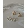 E 실버 925 세줄 레이어드 큐빅 원터치 링 귀걸이