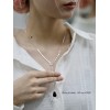 R실버925 뱀줄 체인 길이조절 오닉스 물방울 드롭 관통 목걸이