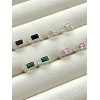 E 실버925 사각 컬러 큐빅 원터치 귀걸이 - 그린 핑크 블랙 화이트
