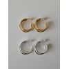 E 실버 925 볼드 볼륨 세줄 후프 링 귀걸이