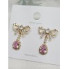 리본 은침귀걸이 큐빅드롭 핑크 퍼플 pink purple ribbon silverpost