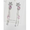 리본 핑크큐빅하트 크리스탈 롱체인 ribbon pink heart long chain